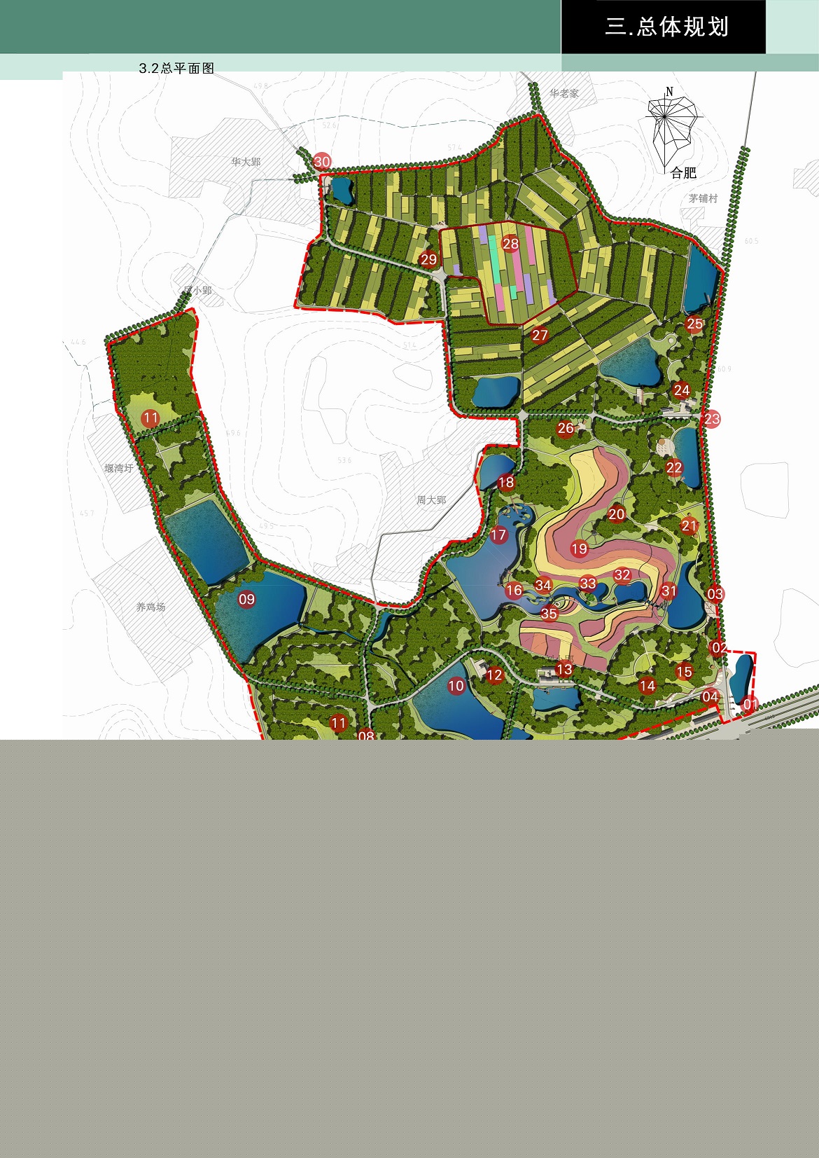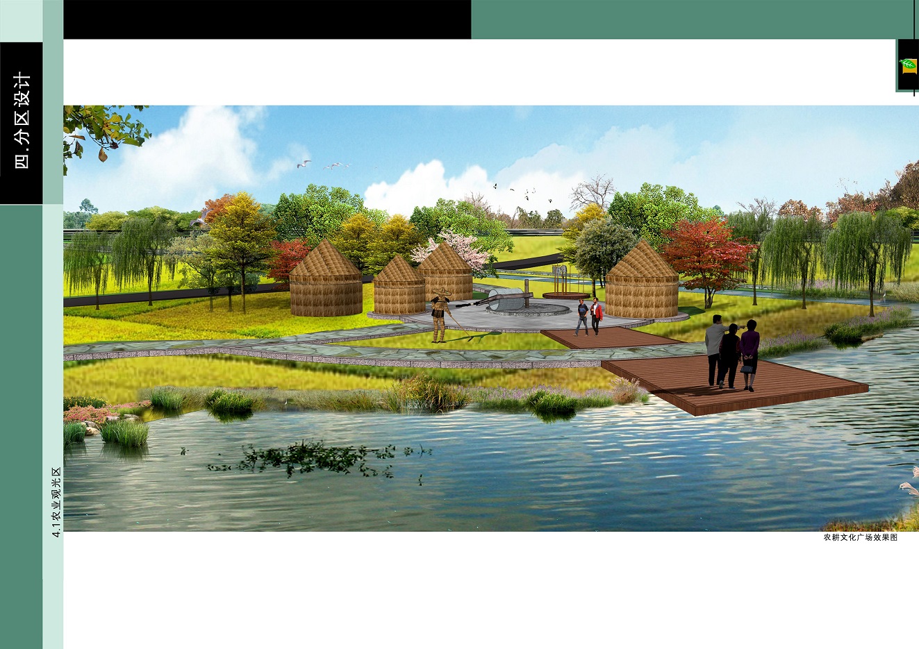 該項目位于合肥市蜀山區(qū)小廟鎮(zhèn)茅鋪村。在規(guī)劃設計上堅持生態(tài)性、參與性、特色性、文化性、經濟性原則。設計中根據四季的交替變換,每種農作物和樹種的不同顏色和形態(tài),利用作物變化的形態(tài)和自身特有的色彩來活躍整個環(huán)境。將農業(yè)展示與景觀相結合,在展示區(qū)內設計科普廊架、農具雕塑及各種農業(yè)相關的小品,使得景觀形態(tài)更具有趣味性。規(guī)劃中通過構建林農漁休閑觀光一體化立體交叉新型鄉(xiāng)村生態(tài)旅游,從而打造鄉(xiāng)村田園生產新模式,建成了具有小廟地域特色的科技型、產業(yè)型、觀光型、休閑型、創(chuàng)新型一體化的現代農業(yè)展示觀光園,形成集現代農業(yè)研究、生產、展示、培訓、休閑、旅游、科普相互融合的服務體系。設計依據功能結構、交通布局將園區(qū)劃分為三大功能區(qū)——核心景觀區(qū),北翼現代農業(yè)景觀區(qū),南翼現代林業(yè)生產區(qū)。各功能區(qū)相互獨立通過道路與景觀有機聯系結合在一起。北翼現代農業(yè)景觀區(qū),以標準化苗木種植生產與現代農業(yè)相結合的復合型景觀體系。核心景區(qū)依據地形地貌特征,打造濱水濕地景觀與臺地式景觀。南翼現代林業(yè)景觀區(qū),提升以建成的苗木景觀的,打造現代林業(yè)景觀區(qū)。使之成為現代農業(yè)生產的樣板區(qū),農業(yè)科技成果和現代農業(yè)裝備應用的展示區(qū),農業(yè)功能拓展的先行區(qū)和農民接收新知識新技術的培訓基地,引領區(qū)域現代農業(yè)發(fā)展,加速小廟特色農業(yè)現代進程。